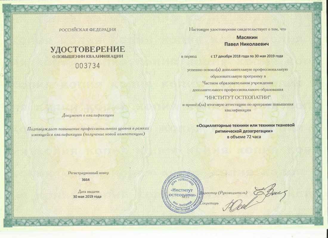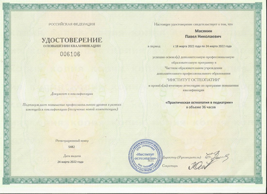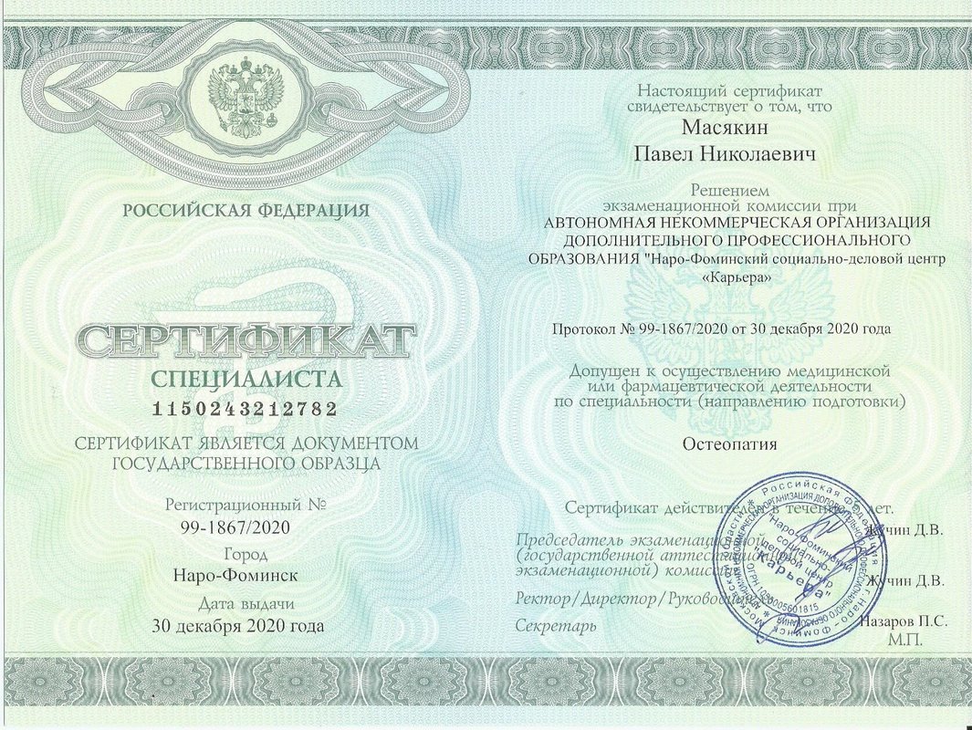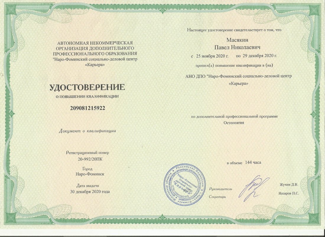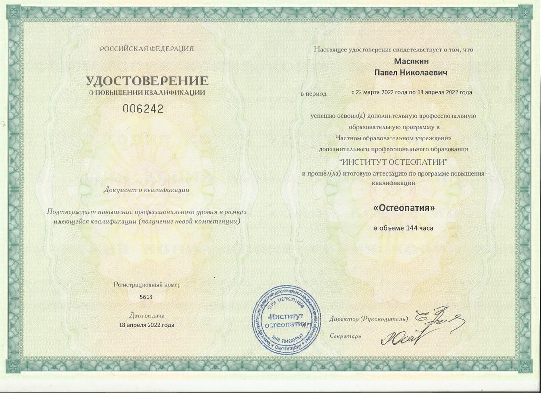 Подробнее о компании Кабинет остеопата Масякина Павла Николаевича